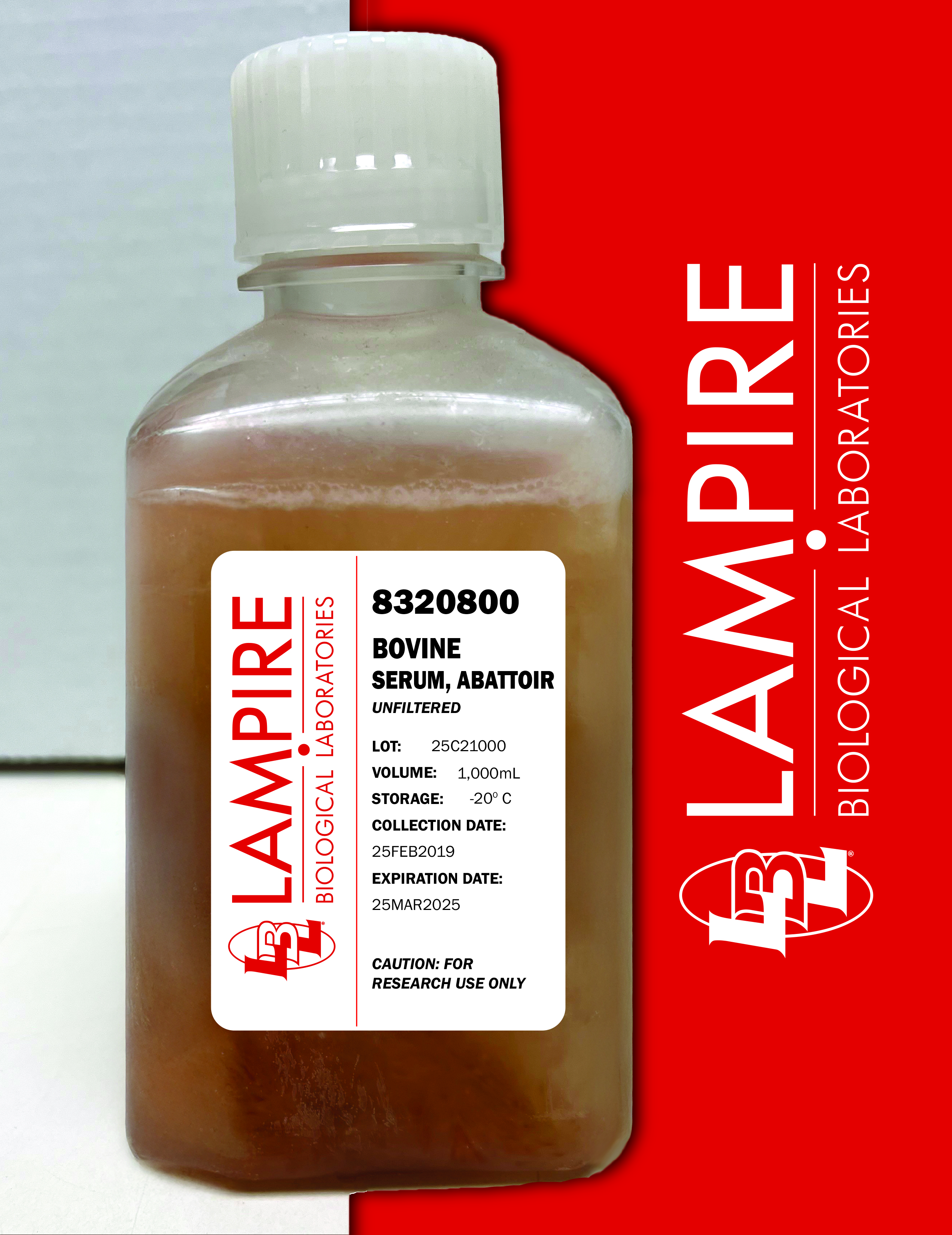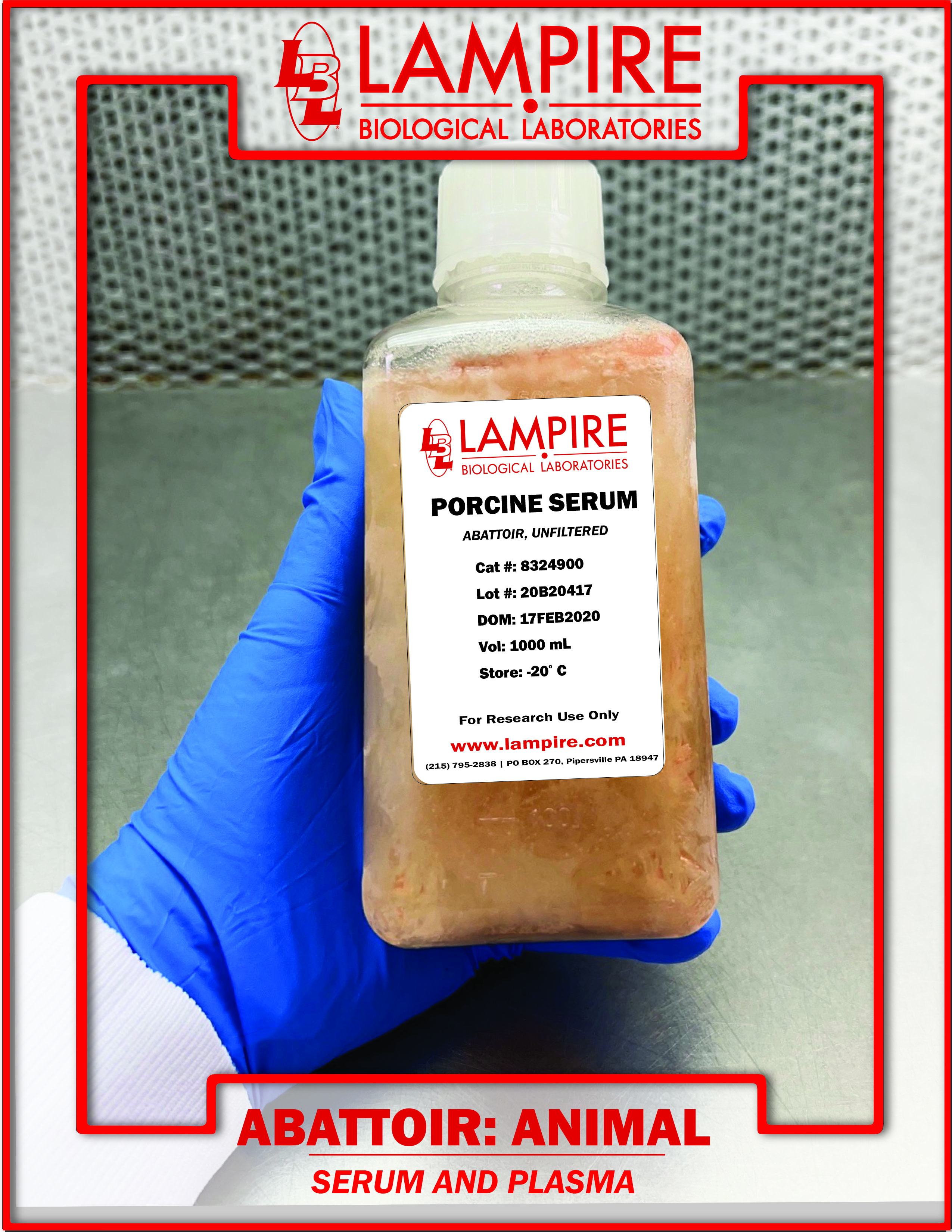 ...Read moreStrategically located in close proximity to a wide variety of abattoir facilities, LAMPIRE is able to fill your large volume serum and plasma needs quickly and efficiently. Our experienced technicians have extensive training on the collection and processing of abattoir whole blood to ensure high-quality material. Abattoir blood is collected from normal healthy animals that have passed an ante-mortem inspection by the USDA (where applicable). See our product listing below or contact Customer Service for more information.