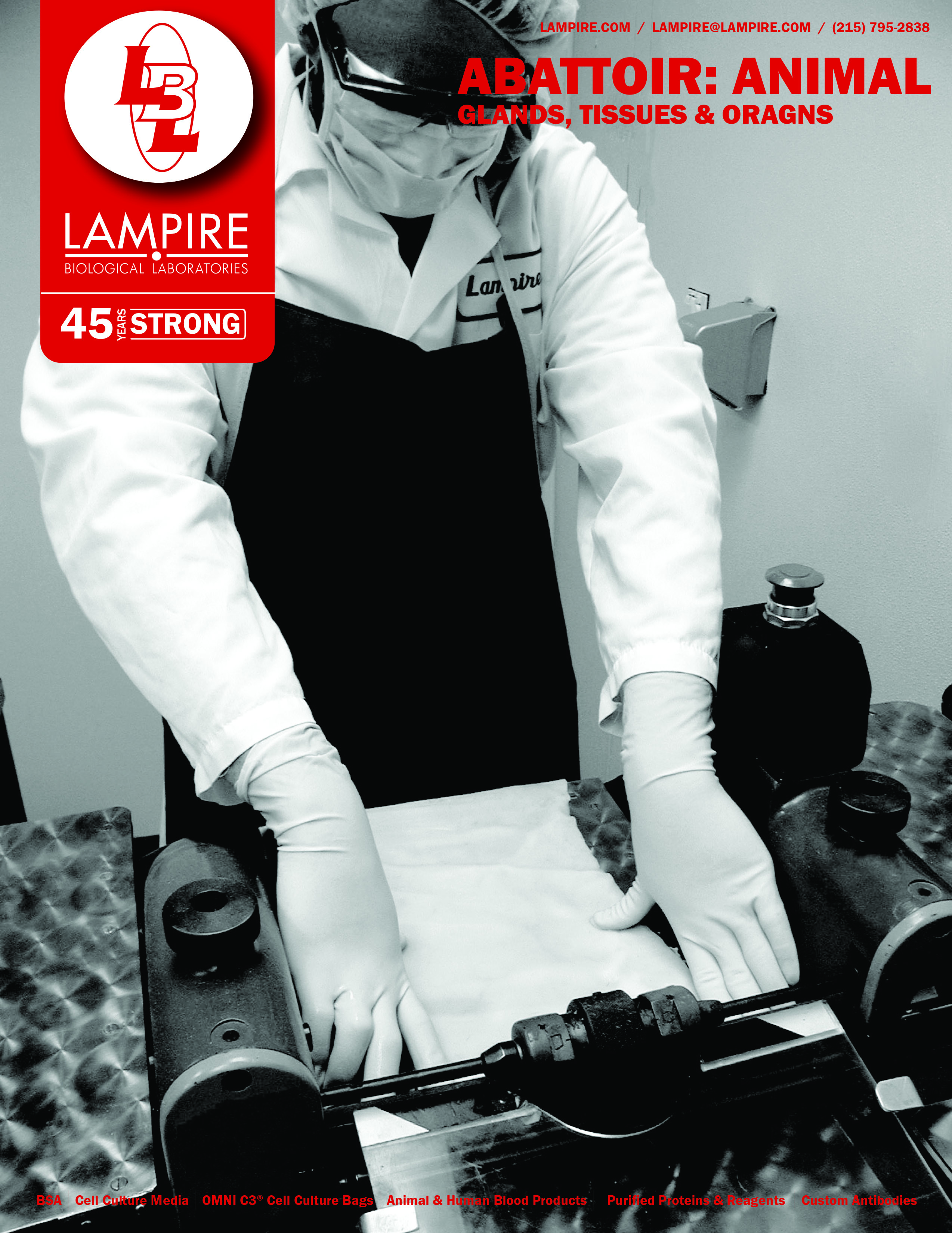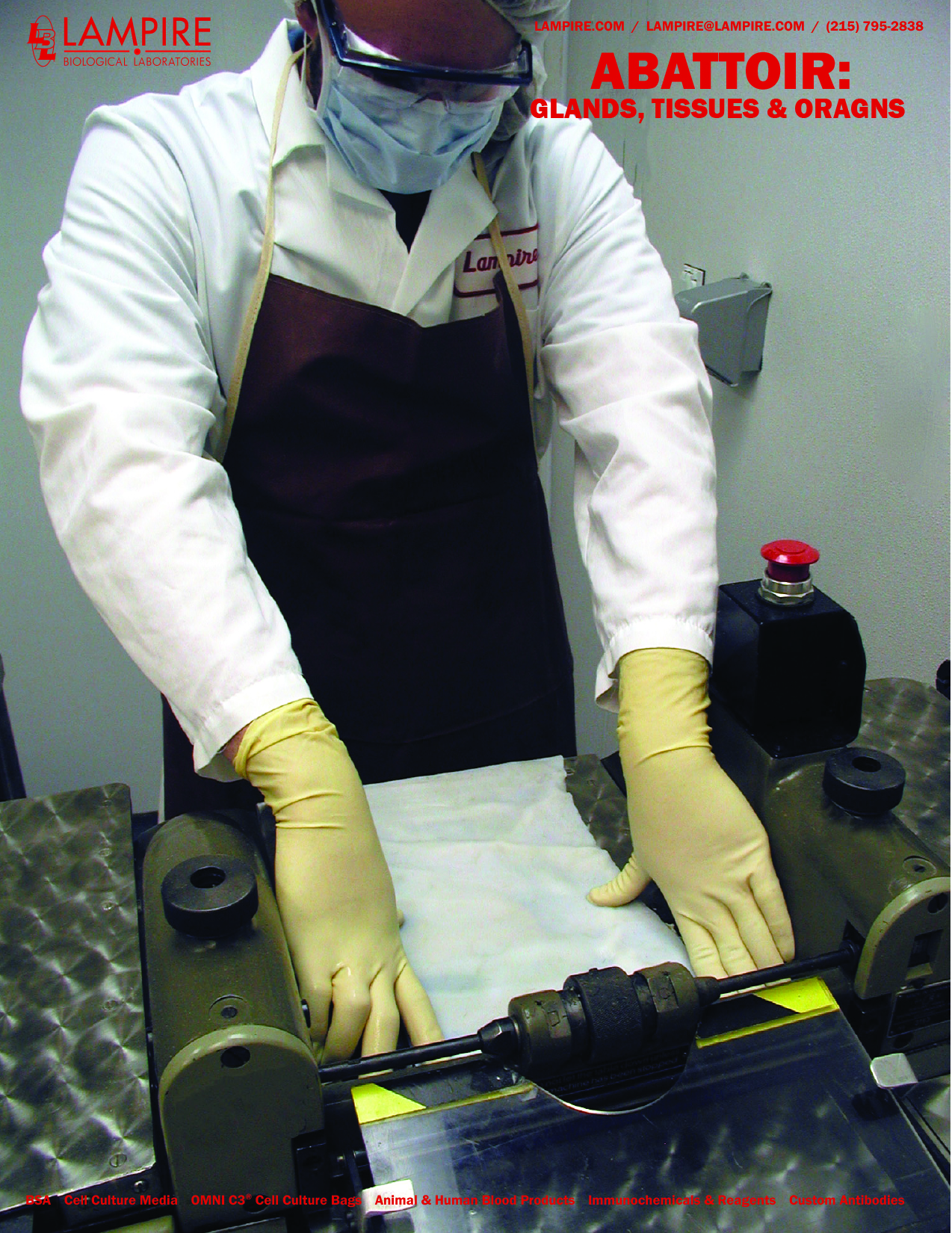 LAMPIRE trained technicians specialize in the custom collection and preparation of abattoir-derived tissues, glands, organs, and fluids from a variety of species. Due to the critical nature of the product preparation and product shelf life, products can be collected and processed to your specifications. See our available preparations and product listing below or contact Customer Service for more information.