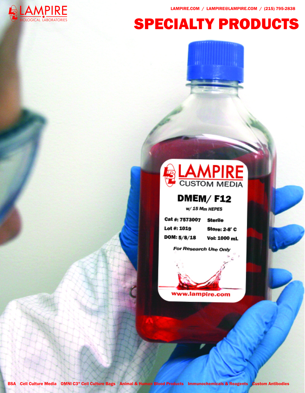 LAMPIRE Specialty Products include our own OMNI C3® Cell Culture Bags for the use in cell culturing, cell transport, and cell growth. LAMPIRE offers custom tissue culture media, reagents, supplements, and mouse embryo culture media to the Research Use Only (RUO) market.